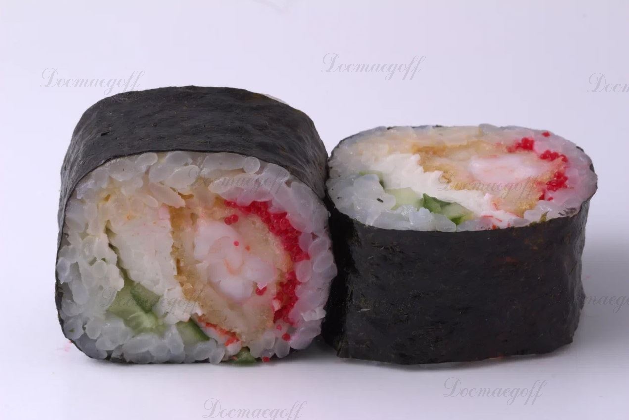 Состав: снежный краб, креветка в темпуре, огурец, масага, спайси соус