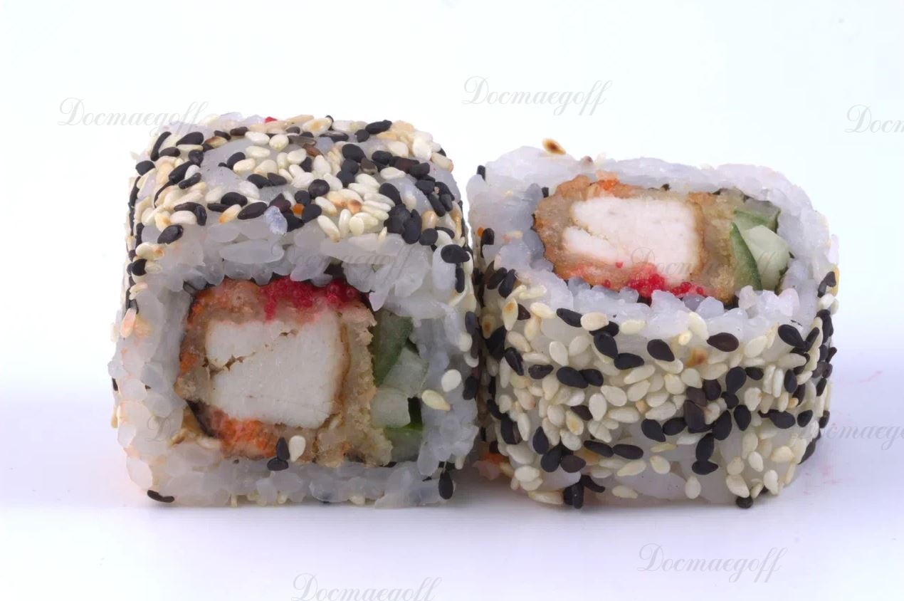 Состав: огурец, грудка в темпуре, яки соус, кунжут, масага