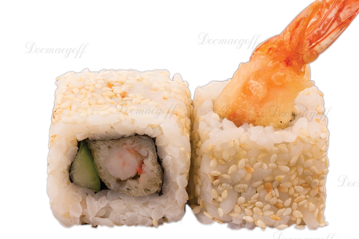 Состав: Креветки в кляре, огурец, кунжут, майонез. 8 шт.